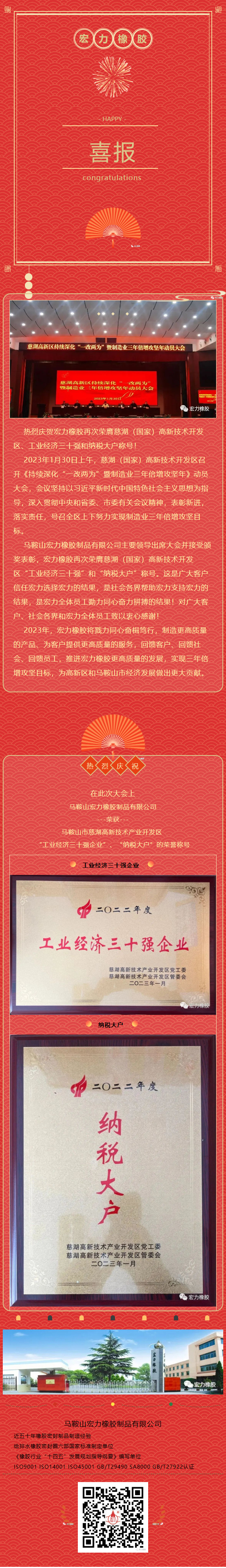 熱烈慶賀宏力橡膠再次榮膺慈湖(國(guó)家)高新技術(shù)開(kāi)發(fā)區(qū)、工業(yè)經(jīng)濟(jì)三十強(qiáng)和納稅大戶(hù)稱(chēng)號(hào)!